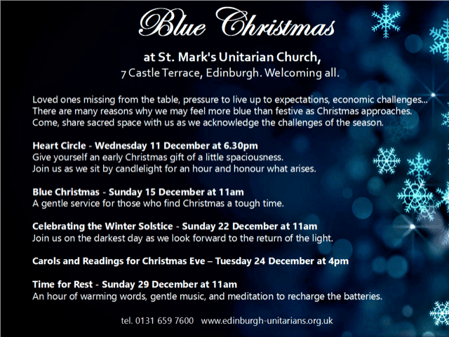 In the meantime our Unitarian friends are offering a series of events over the Christmas period: