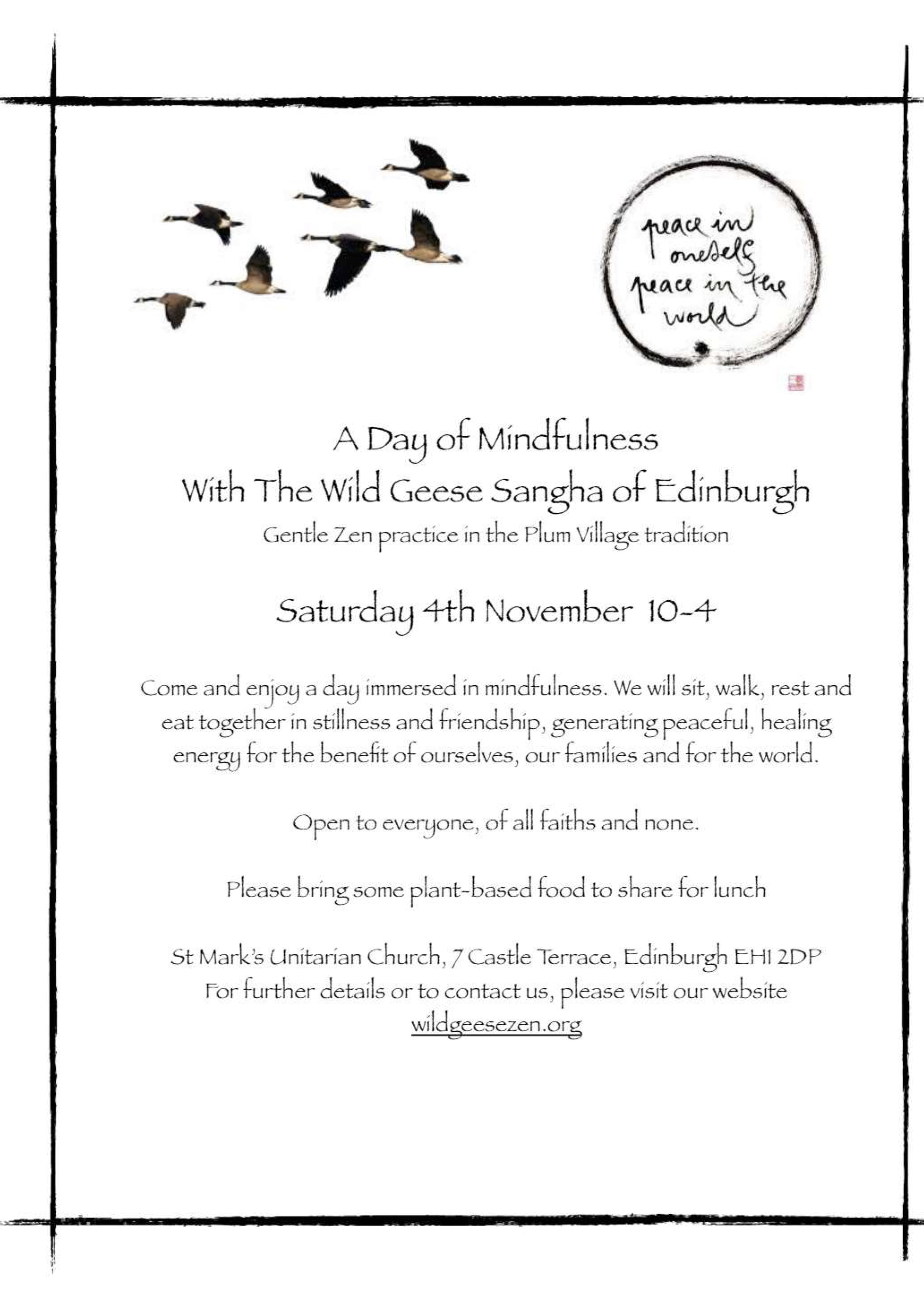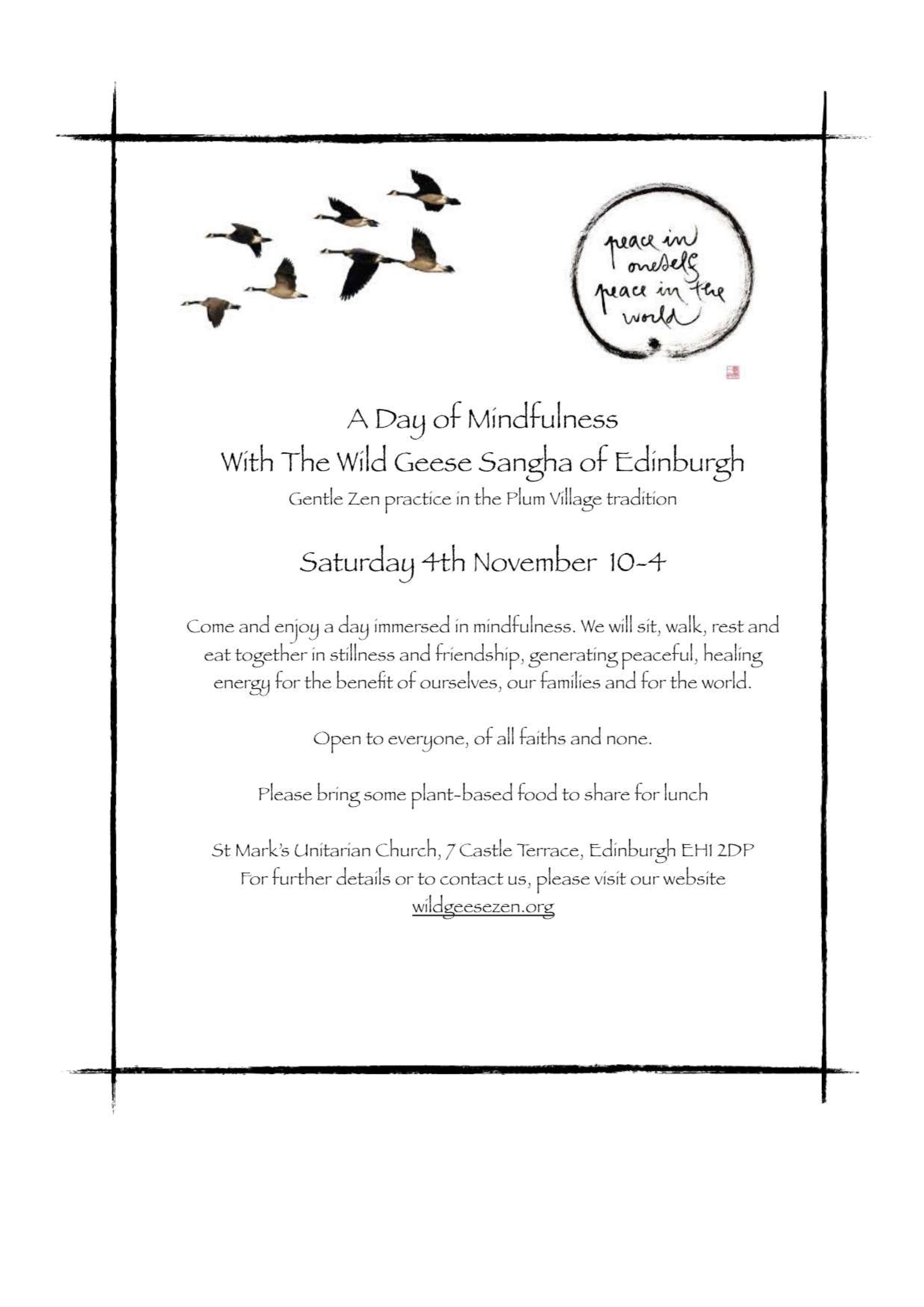 We will be having a Day of Mindfulness on Saturday 4 November 2023 at St. Marks Unitarian Church from 10am to 4pm. Flyer attached.