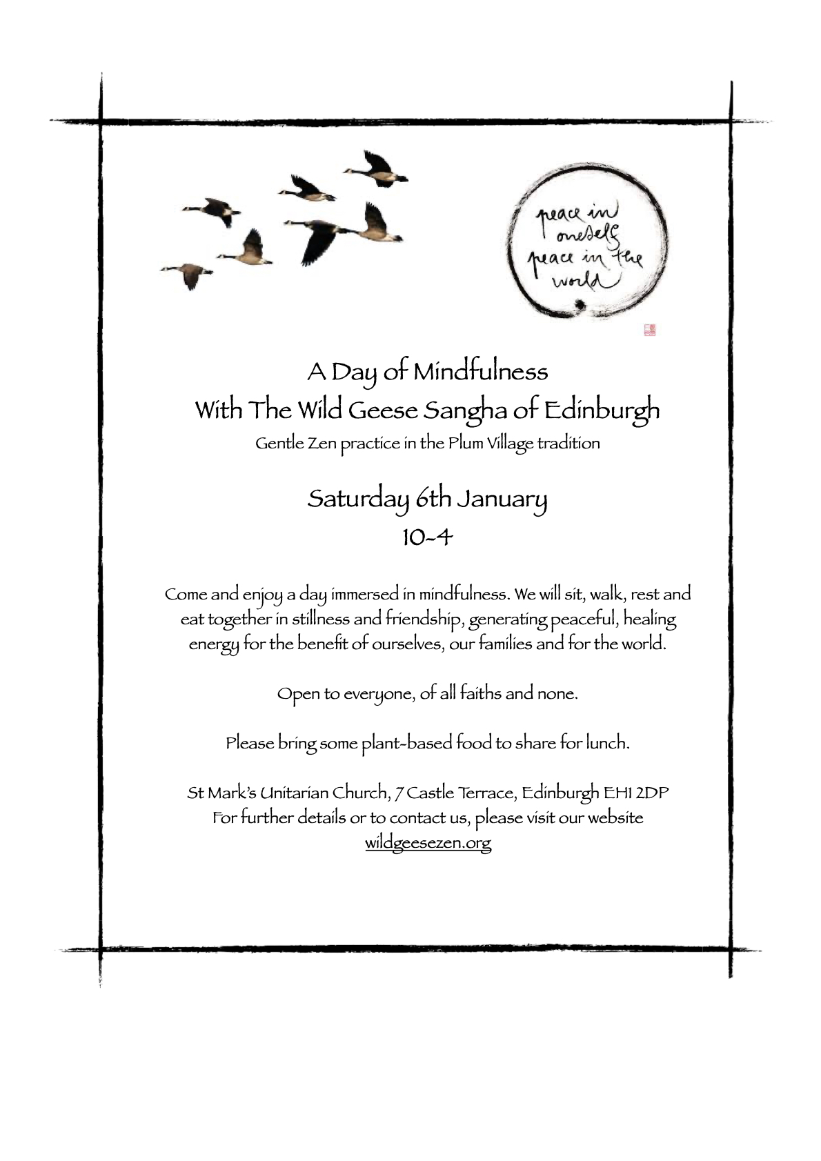 The first session in the 2024 will be on Thursday 4 January and then on Saturday 6 January 2024 there will be a Day of Mindfulness at St. Marks led by Gustaf. The session will be from 10am to 4pm but we suggest that you arrive a little earlier so that we are all ready to start at 10am. Please bring some plant-based food to share for lunch.