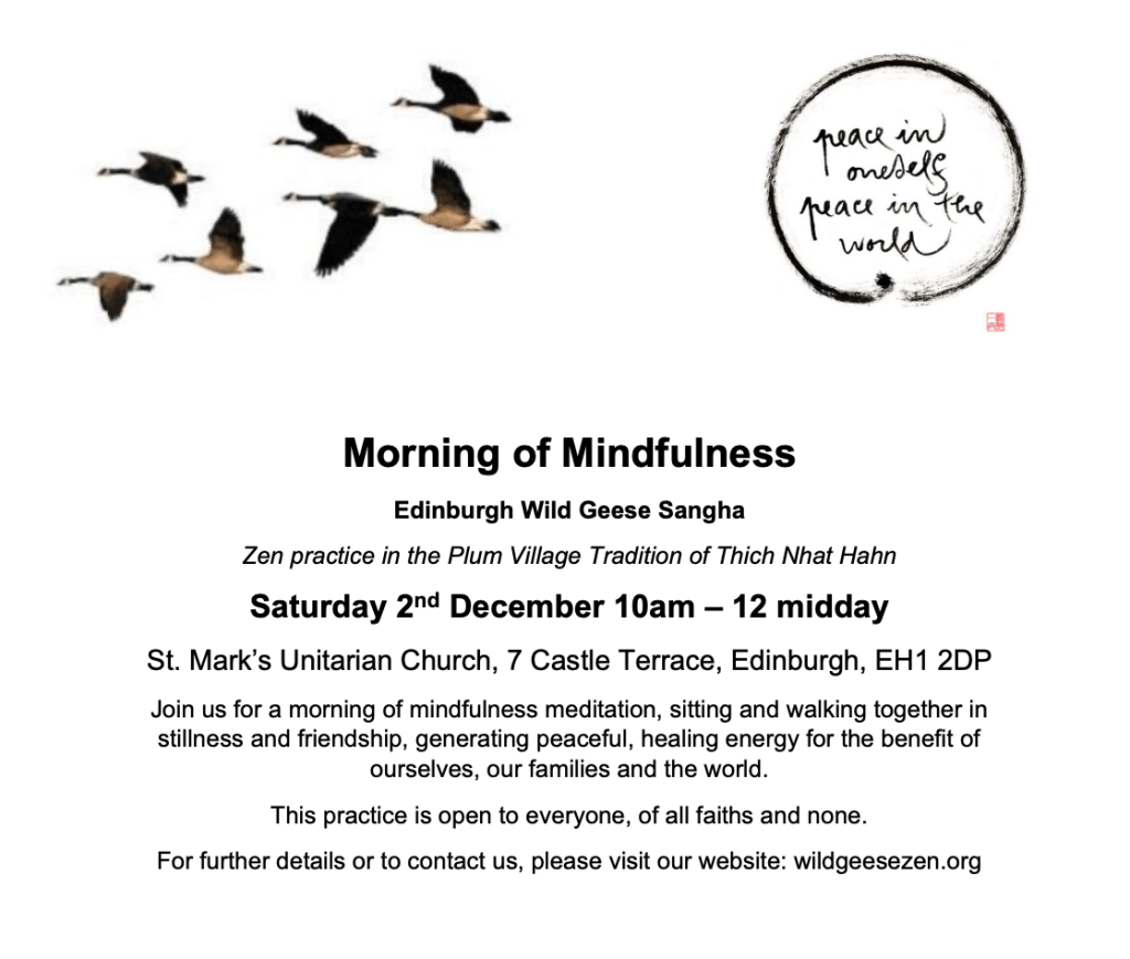 The day will include readings, guided meditation, walking meditation, mindful movements, a mindful lunch, and sharing in small groups.